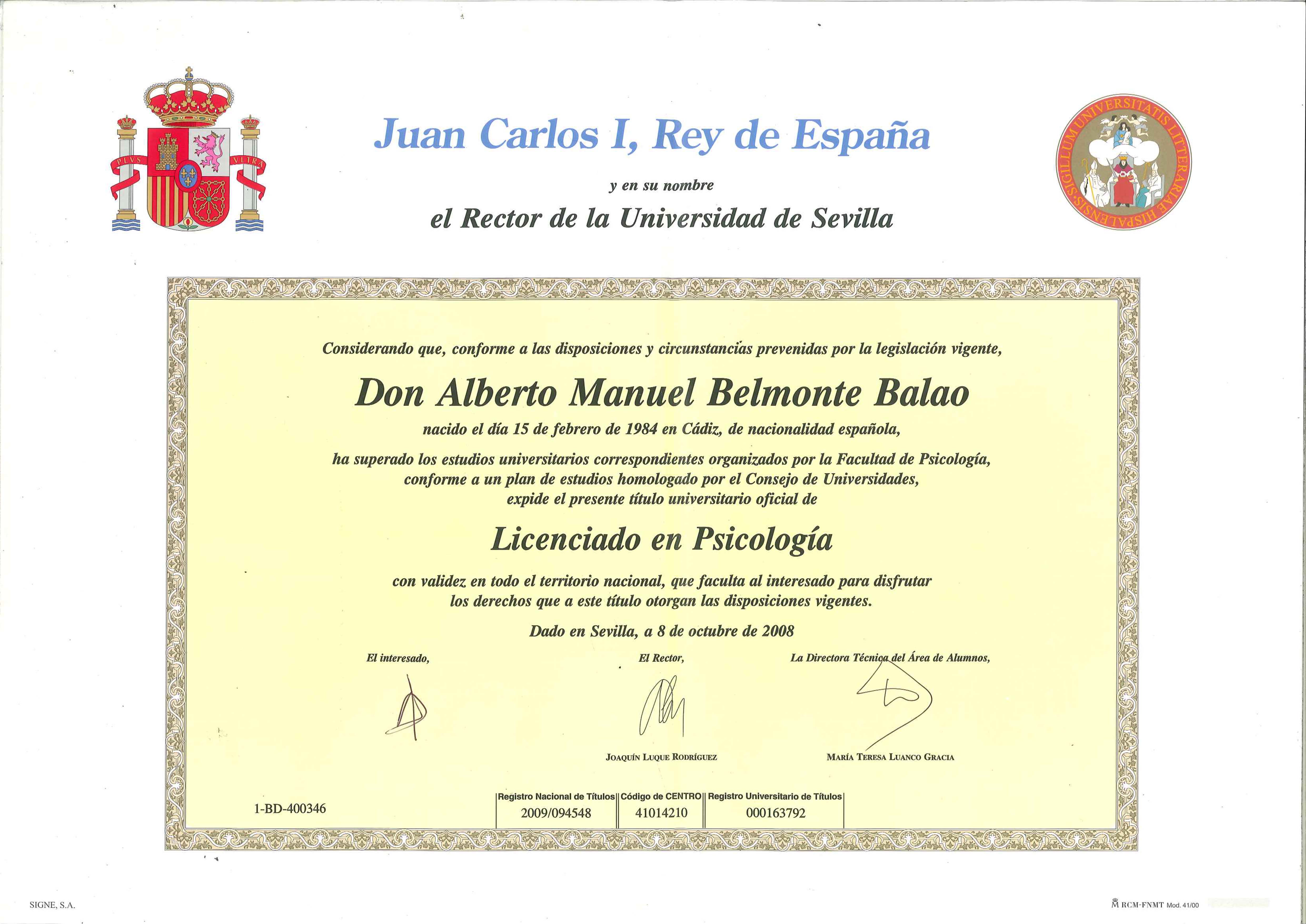 Soy licenciado en Psicología y poseo un Máster Internacional en Psicología Clínica por la Asociación Española de Psicología Conductual (2009-2011). Además, obtuve un Máster en Bioética por la Universidad Católica de Murcia en 2011.